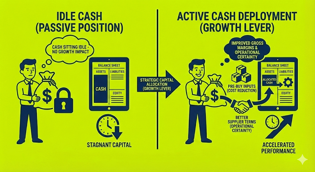 In one case, we worked with a client whose business was profitable and cash generative. Their balance sheet showed a strong cash position, which initially felt reassuring. However, when we looked more closely, it became clear that a large portion of that cash was simply sitting idle. It was not allocated with intent, and it was not actively supporting the companyβs growth.