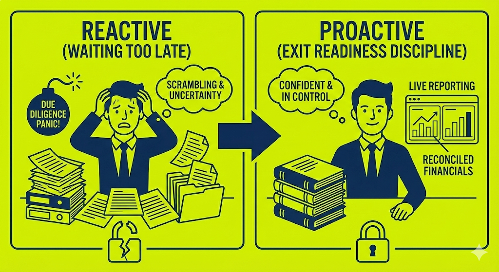 Being ready to sell does not mean you are planning to sell tomorrow. It means your financials, reporting and operations are structured so that you could withstand scrutiny at any point. The founder who builds with this mindset creates optionality. The founder who delays it often finds themselves reacting under pressure.