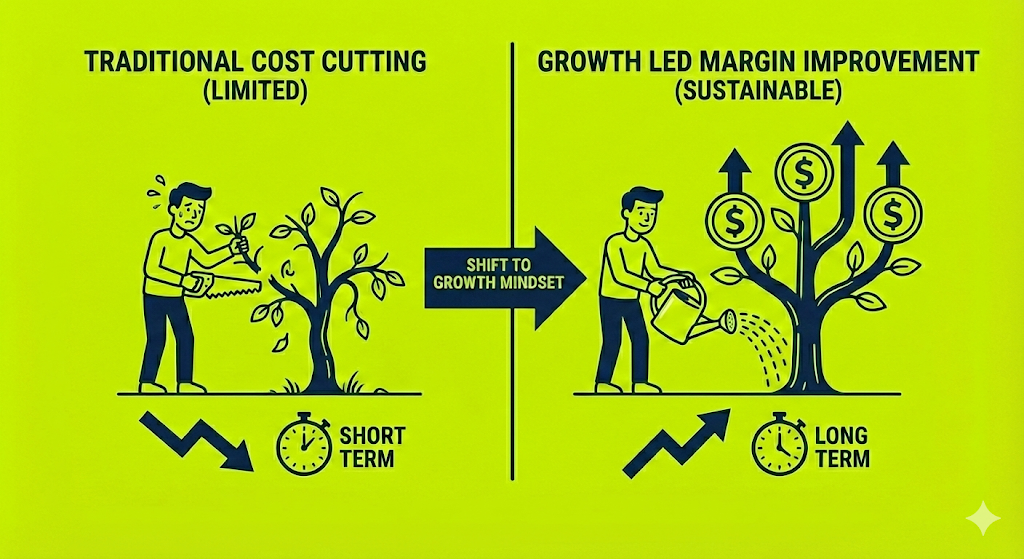 When businesses start to focus on profitability, the instinct is often to look for costs to cut. While this can create short term improvements, it quickly reaches a limit. At Quantro, we approach margin improvement with a growth mindset. The real leverage, especially in service businesses, comes from improving how revenue is generated rather than only reducing spend.