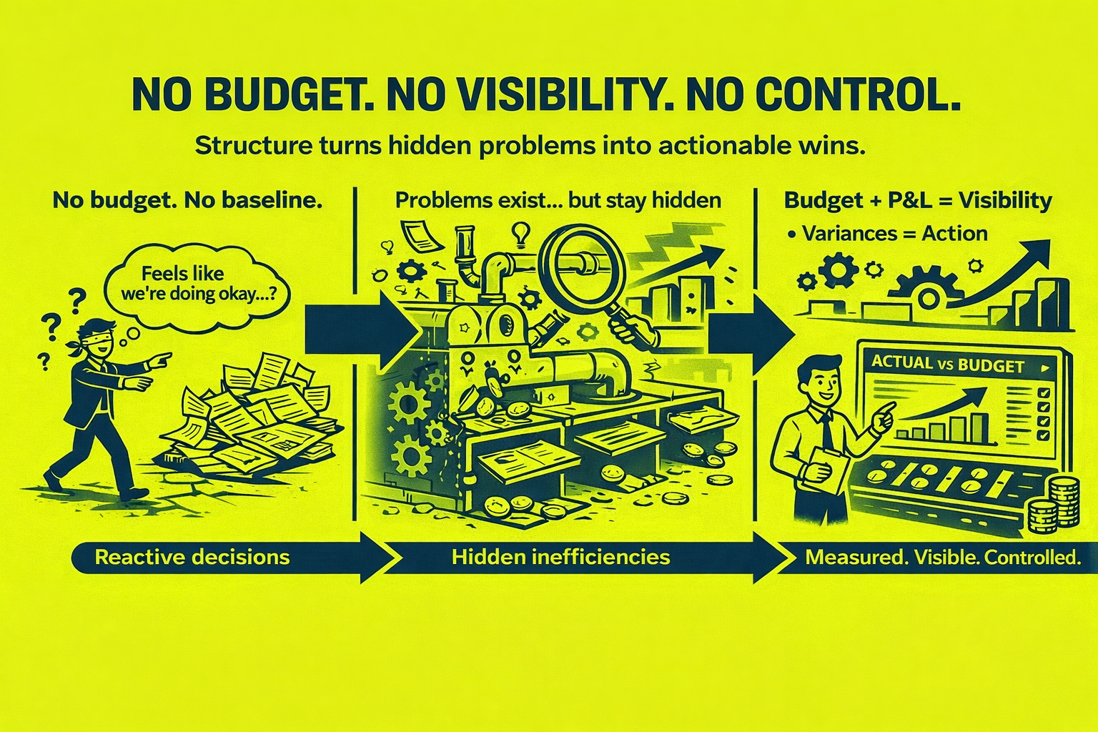 Without a structured budget and a detailed monthly P and L, there is nothing to compare actual performance against. Finance teams are left with a general sense of how the business is performing, but no clear way to measure whether results are better or worse than expected. This creates a reactive environment where decisions are based on instinct rather than evidence.